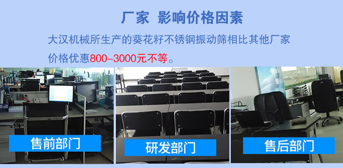 大漢機械所生產(chǎn)的葵花籽不銹鋼振動篩在原有的篩分工藝基礎(chǔ)上精益求精,不僅每一道工序自主研發(fā)、生產(chǎn)設(shè)計和銷售,省去了大量的外購成本和中間商環(huán)節(jié),力求成本較低化薄利多銷讓利給廣大用戶,相比其他廠家價格優(yōu)惠800-3000元不等。