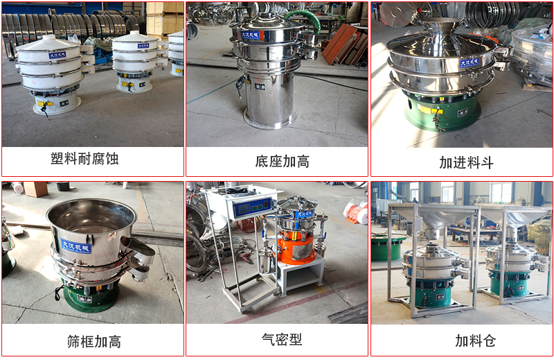 4、特殊要求: 根據(jù)客戶特殊的生產(chǎn)需求,如特殊形狀的篩箱、多層篩網(wǎng)結(jié)構(gòu)、加進料斗、加料倉等。