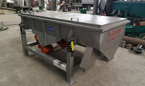 3、閉合電源開關(guān),確認振動電機同步反向旋轉(zhuǎn),進行10-20分鐘空運轉(zhuǎn),設(shè)備在運行時如有異常聲音,應(yīng)迅速關(guān)機進行檢查處理。設(shè)備運轉(zhuǎn)正常后,可將少量需篩分的物料通過進料口設(shè)入篩機內(nèi),確認物料向出料口方向行進,然后逐漸增加到所需和所能承受的給料量。