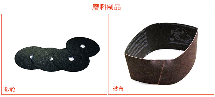 磨料制品的制造,除粉狀滑石和氧化鐵外,所有原料均需壓碎和篩選,篩選粒度應為4~900, 即直徑約6毫米(公厘)到6微米(1公厘的千分之一)或者更細。砂輪是主要的磨料制品,由磨料和結合劑按一定比例混合,經模壓成形後燒結而成,後還必須進行整形、平衡和超速試驗。砂布和砂紙為另一種產量較大的磨料制品,是由磨粒黏結在基層材料(布或紙)上,經干燥後裁切成不同規格的制品。其他為粉狀或粒狀磨料,在篩選後,需經一定的工藝處理,如研磨或拋光用磨料,通常加以礦物油膏或蠟等輔料,以適應不同工作條件的需要。