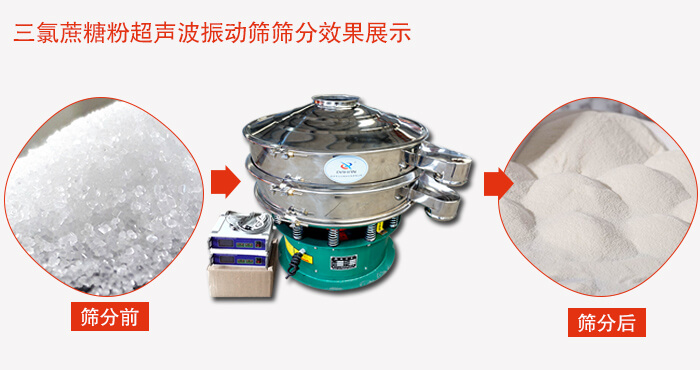 三氯蔗糖粉超聲波振動(dòng)篩是超聲波技術(shù)與振動(dòng)篩分技術(shù)的有機(jī)結(jié)合,它可以由普通篩分進(jìn)行簡(jiǎn)單的加超聲波系統(tǒng)改造而成,利用超聲波振動(dòng)篩進(jìn)行三氯蔗糖的篩分,能夠減少篩分過(guò)程的粉塵污染及產(chǎn)品消耗,能夠大幅提高篩分效率,節(jié)約成本,能夠消除或降低篩分過(guò)程的靜電吸附問(wèn)題、避免或減少篩網(wǎng)堵塞問(wèn)題,能夠有效提高篩分精度。